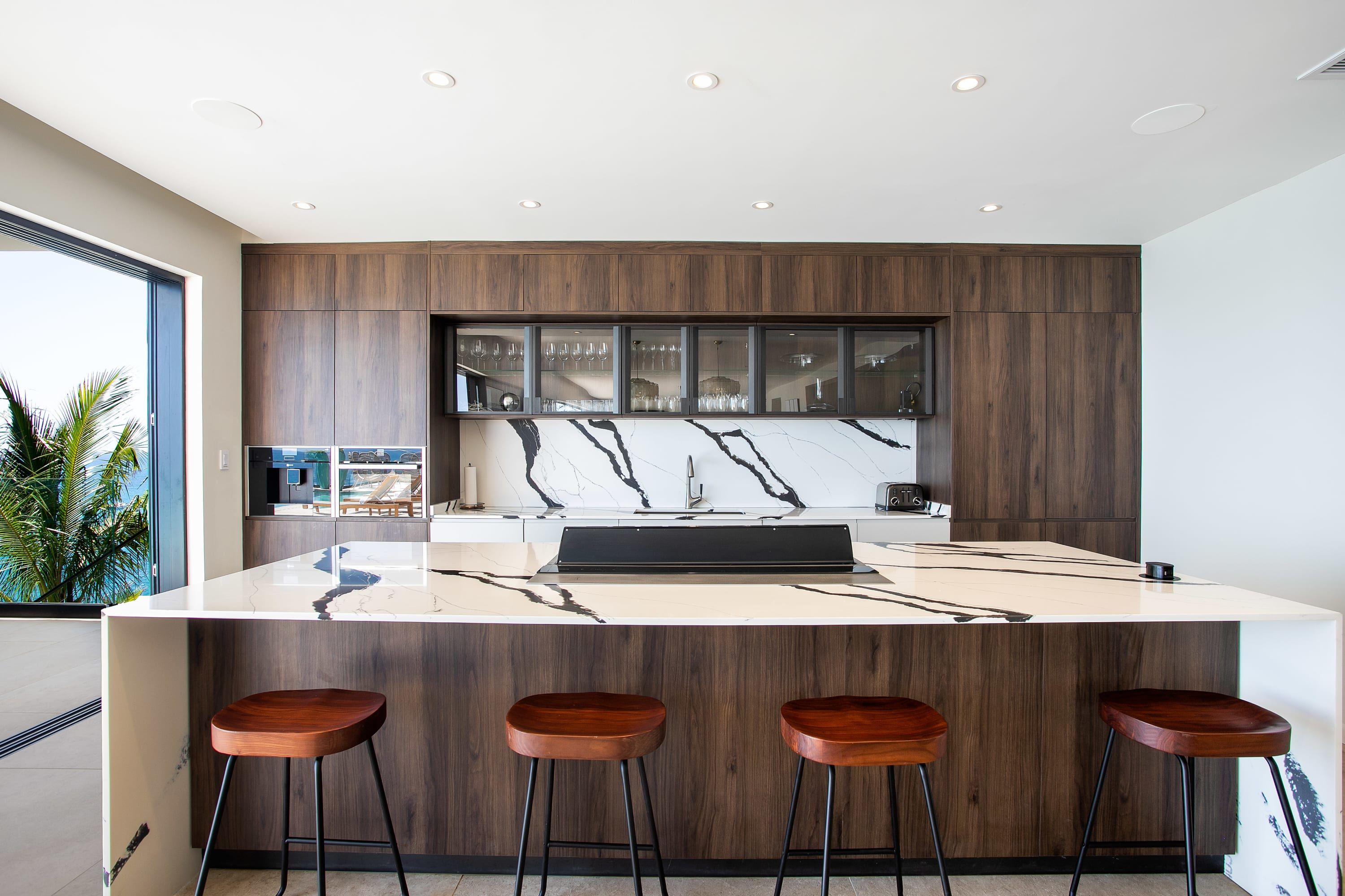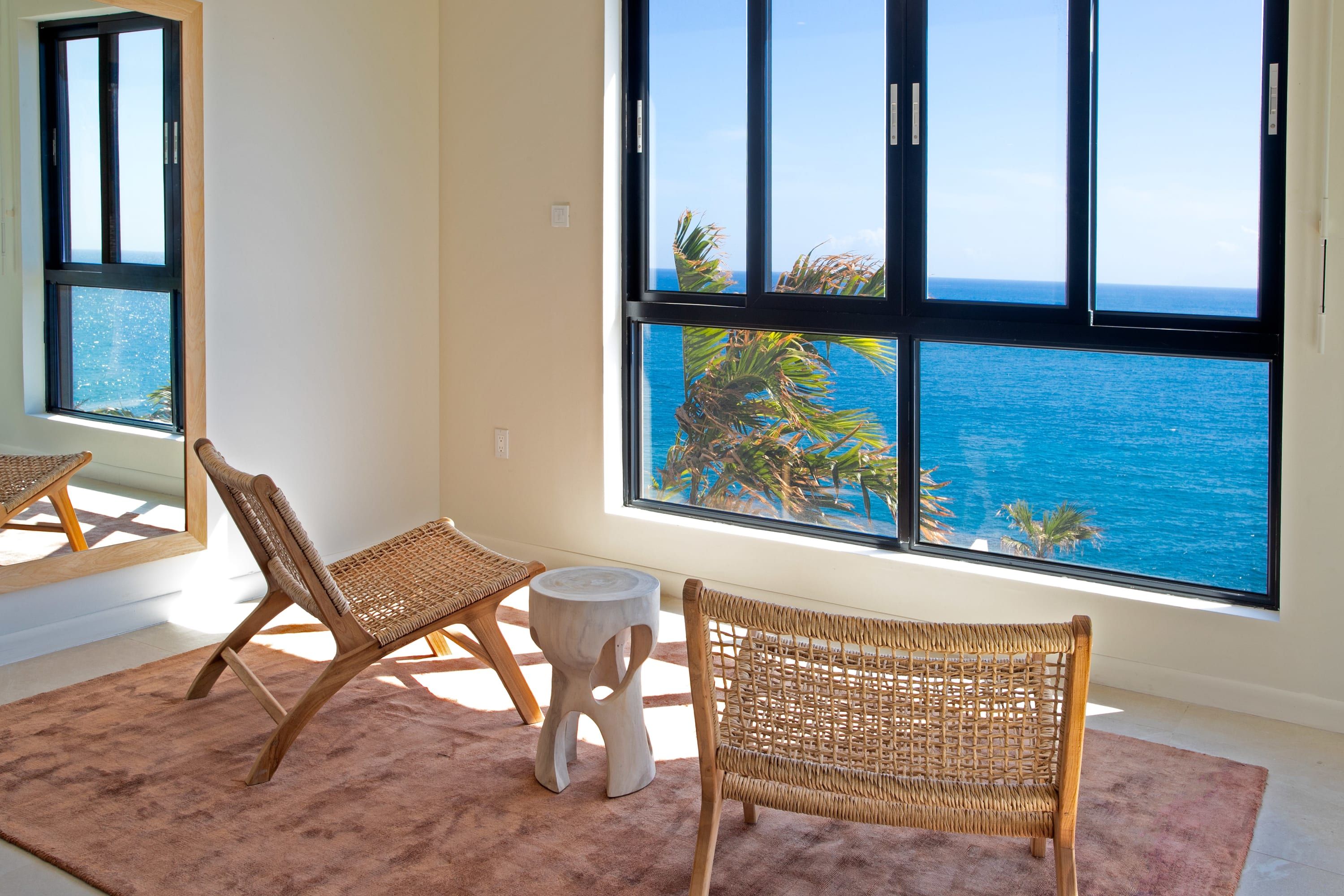Walking through the entrance, guests will find themselves welcomed by a sense of openness and splendor. Villa Aqua Dream's open-concept design offers guests panoramic 270° views of the expansive indigo Caribbean waters through large windows. Vogue yet refined interior decor, featuring neutral tones and top-of-the-line furnishings, complement Villa Aqua Vista's modern aesthetic.