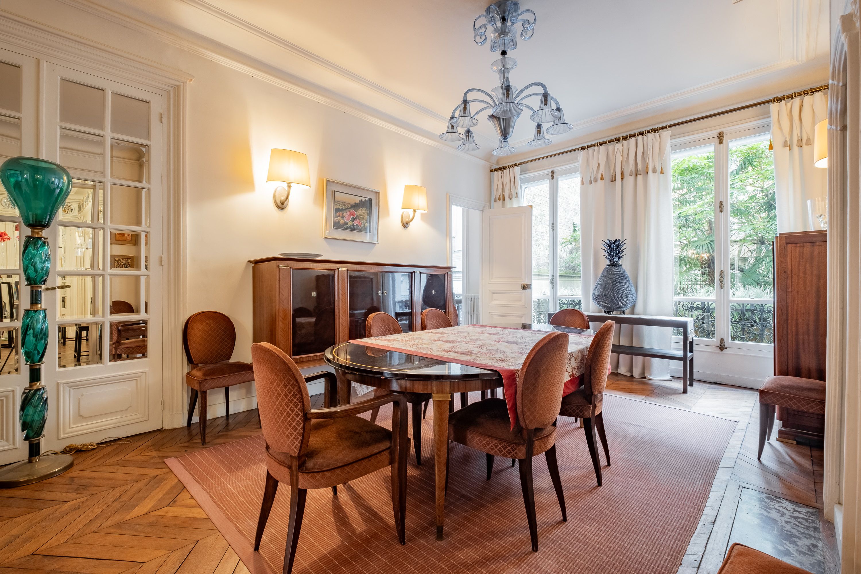 Old-world luxury meets sophisticated modern design in this breathtakingly elegant three-bedroom home. Marvel at the beautifully intricate cornices, the gorgeous vintage mirrors atop ornate fireplaces and the parquet wooden flooring, or step outside and experience Paris at its very best. Located in the 8th arrondissement in the capital's so called 'Golden Triangle', a quick stroll in one direction will take you to the Seine, while the opposite will lead you to the Arc de Triomphe - or if you want to stay in, enjoy a drink in the building's beautiful shared garden.