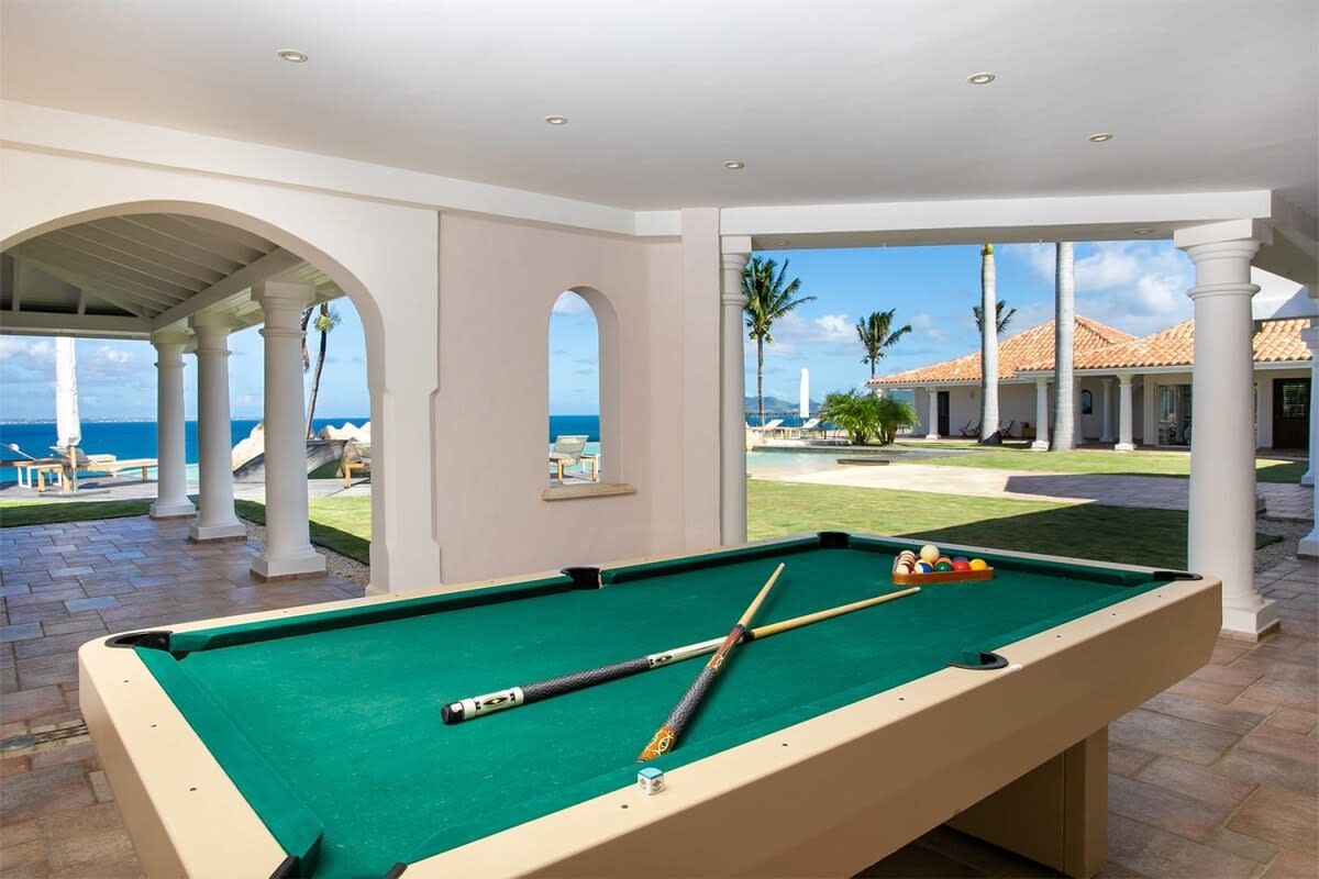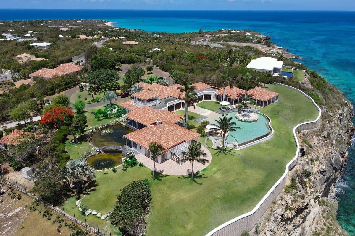 Pearl Coast Estate is an impressive villa that sits on the cliffside of the wonderful Terres Basses with the neverending sights of Anguilla and the clear Caribbean Sea. This estate upholds a notable 4.5 acres of level land, hosting five bedrooms for a large group of guests. Everything in this home is extravagant, from its walk-in, beach-style pool, to the unique koi fish pond. Pearl Coast Estate is surrounded by lush flamboyant gardens and mature trees that provide plenty of shade from the sun after a day by the pool. The expansive property circulates the pool with the central focal point being the beautiful ocean. With a grand entrance and inspiring ocean vistas, Villa Pearl Coast Estate promises an unforgettable experience as soon as the clients step foot on its land.